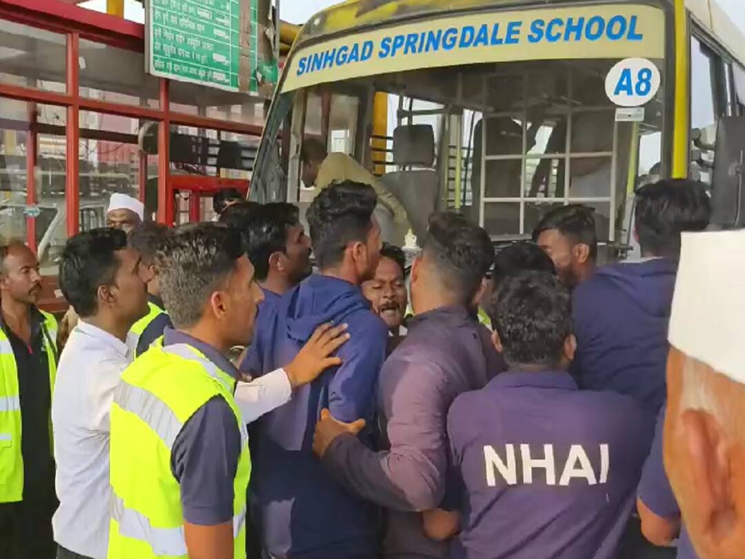 टोल नाका कर्मचारी आणि विद्यार्थ्यांमध्ये तुफान राडा; स्कूल बसला टोल मागितल्यावरून वाद