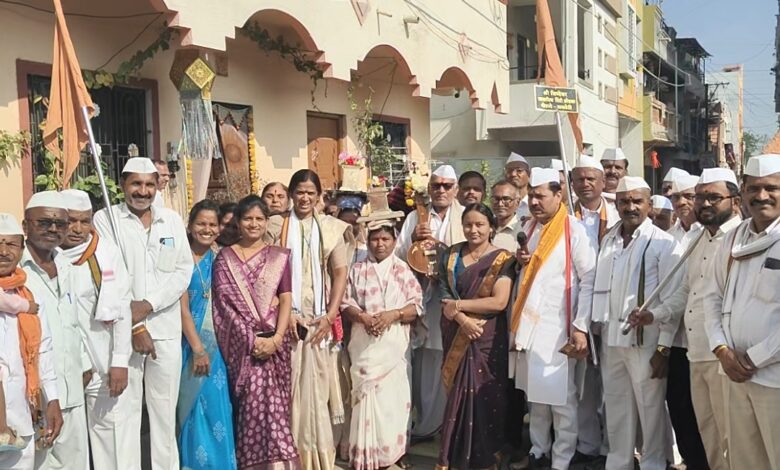 कार्तिकी एकादशीसाठी आळंदीकडे जाणाऱ्या सिध्देश्वर प्रासादिक दिंडीचे पेरणेफाटा येथे उत्साहात स्वागत